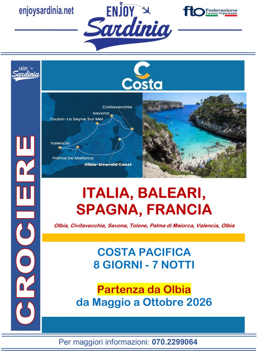 Crociere COSTA: ITALIA, BALEARI, SPAGNA, FRANCIA