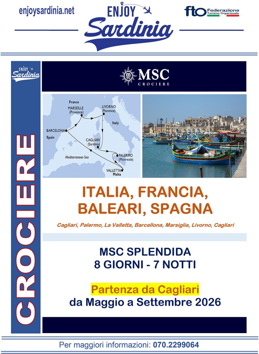 Viaggi in nave e crociere » Cagliari, Palermo, La Valletta, Barcellona, Marsiglia, Livorno, Cagliari